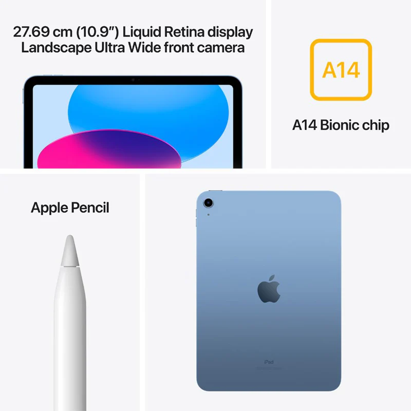 Apple iPad (10th Gen) – A14 Bionic Chip / 64GB / 10.9″ Liquid Retina / Wi-Fi / Cellular / 1YW / Blue